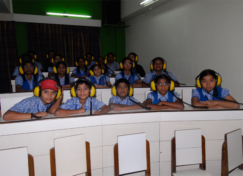 A specially designed auditorium having Group Amplification System with a capacity for 40 hearing impaired students. Having known the fact that hearing impaired students learn faster with visual clues along with auditory clues, all kind of equipments like Television, Tape Recorders, Over Head Projector, LCD Projector, CD/DVD Player, Audio Video cassettes, CD ROMs, DVDs etc. are available in this auditorium for students instant access.