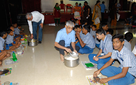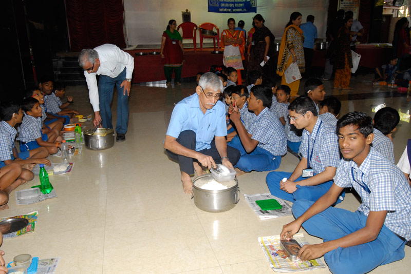 Nutritious mid-day meal provided to students through Iskon , sponsored by ’Rashtriya Chemical Fertilisers Ltd’.