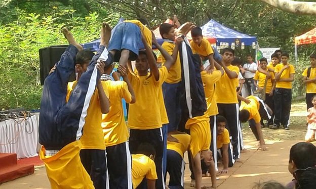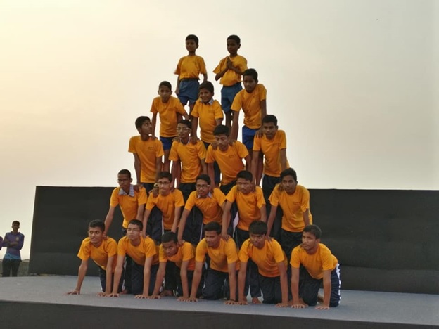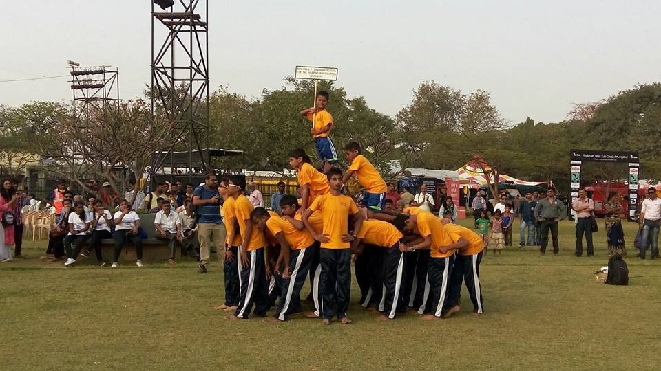 On the 4th Feb,2017 Kala Ghoda Festival was inaugurated by the students of our school, showcasing Pyramid Formation twice. One on the lush green ground and second time on the stage for the audience. The audience present at the venue were very appreciating and enjoyed their presentation. Ms. Sudha Chandran was a very prominent audience and she appreciated our students performance and motivated them.