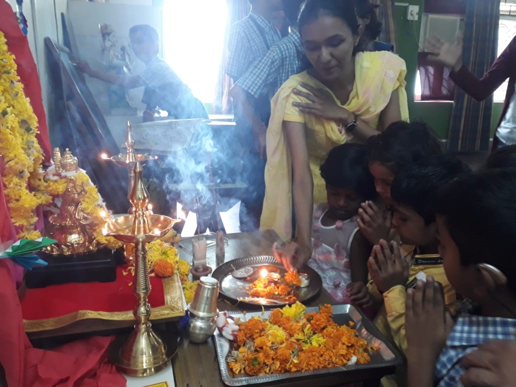 On the occasion of Ganesh Chaturthi, we celebrated this auspicious day by performing various functions. Children performed aarti and took blessings of Lord Ganesha.