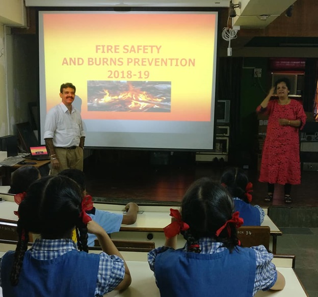 To make everyone aware about the precautions,safety, prevention from fire, we organised a short lecture of Dr. Navin Vajirani. He explained all the things very nicely and in easy language. Students understood the seriousness of this subject. Dr.Vazirani explained about skin donation also.We are very thankful to them.